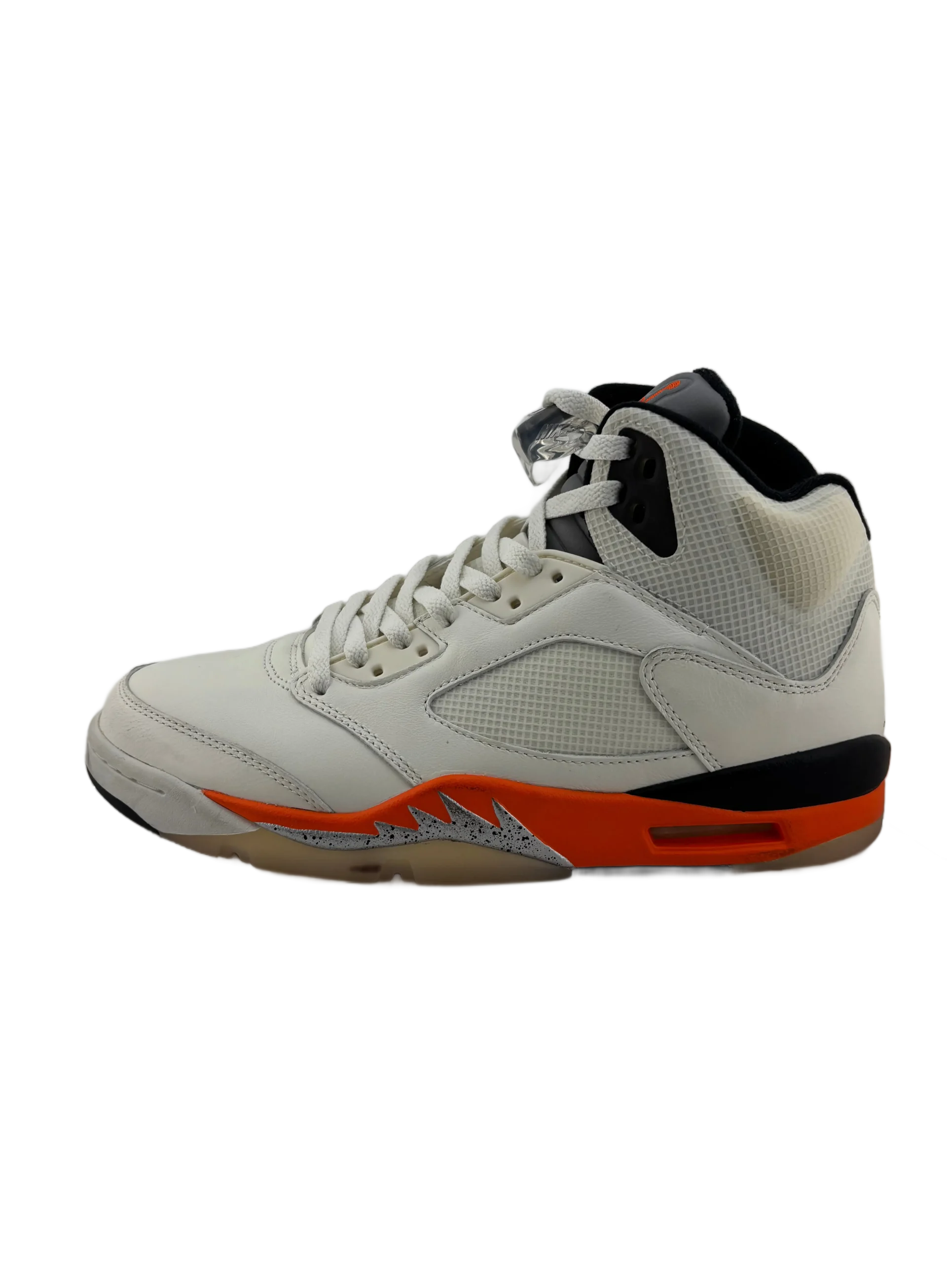 Like other Shattered Backboard releases, white, orange, and black are prominent in the design’s color-blocking. Instead of utilizing signature Jordan 5 netted inserts on the quarter and tongue, the Shattered Backboard opts for a translucent mesh that also appears on the collar. Metallic shark-tooth details on the midsole and a semi-translucent outsole add the finishing touches.